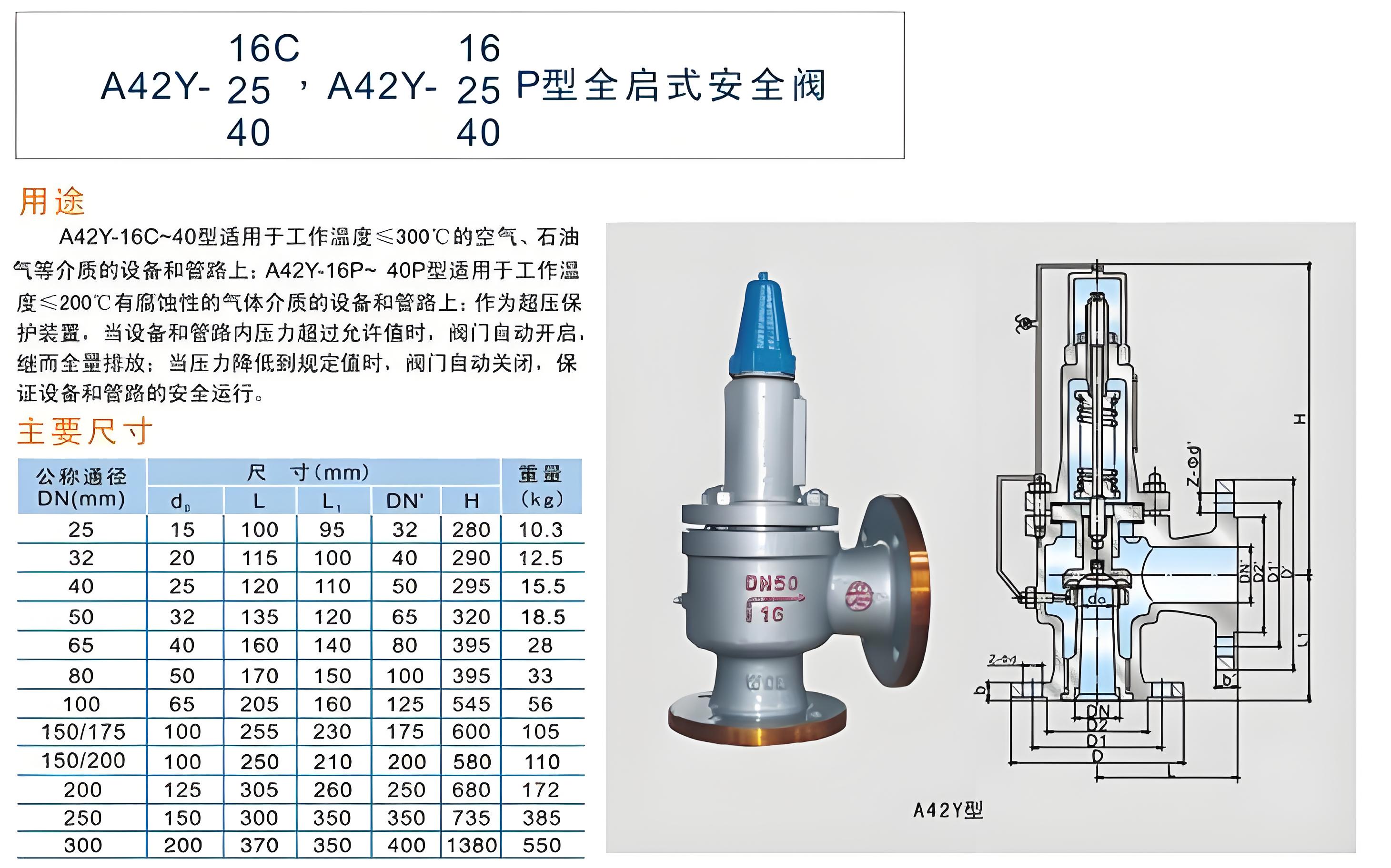 A42Y-16C/DN40安全閥采用全啟式結(jié)構(gòu),具有以下特點(diǎn):