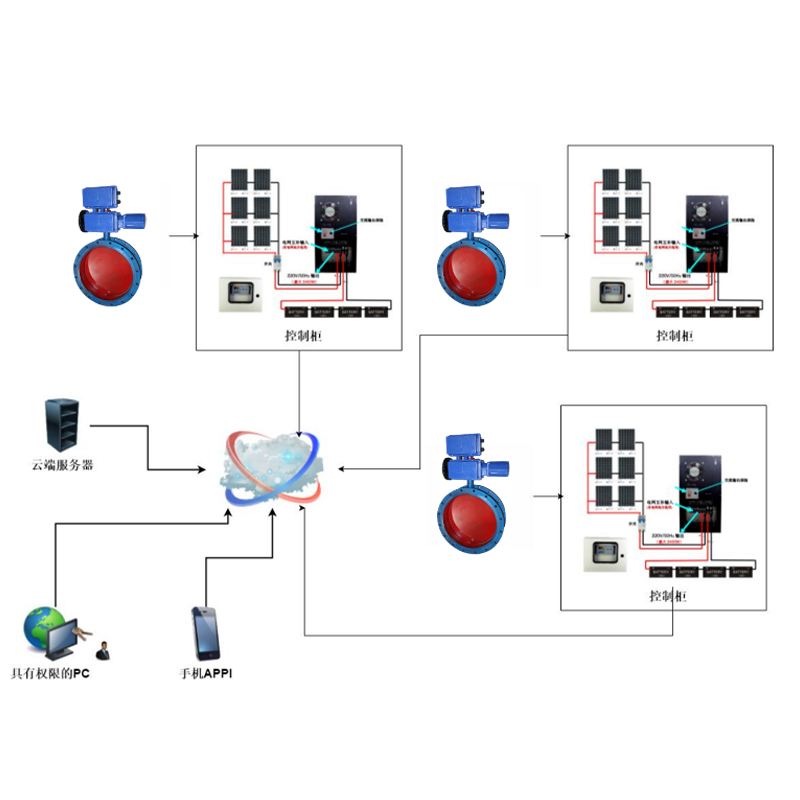 該電動閥連接IOT物聯(lián)網(wǎng)平臺,通訊部分可選用Lora(3公里內(nèi))或4G通訊(不限距離),實現(xiàn)集控設(shè)備對電動閥門的遠程控制,并能實時監(jiān)測閥門狀態(tài)。